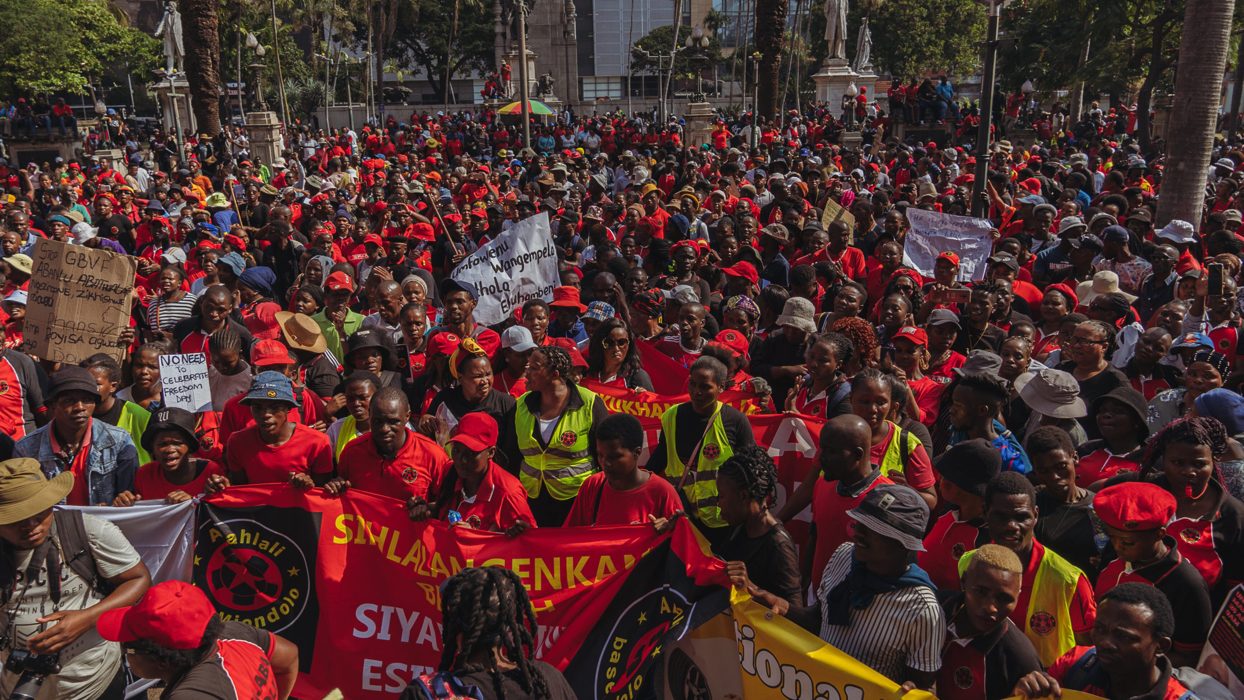 Para estas comunidades, el 25 de abril no es un día de alegría, sino de rendir cuentas. Es un duro recordatorio de que, aunque el apartheid haya terminado formalmente, las desigualdades estructurales que arraigó siguen profundamente arraigadas. «La libertad sin tierra, sin comida y sin dignidad no es libertad», proclama el presidente de AbM, S’bu Zikode. Por eso, el mismo día en que el Estado celebra la liberación, las personas pobres organizadas del país se reúnen para decir: “Aún no somos libres”.