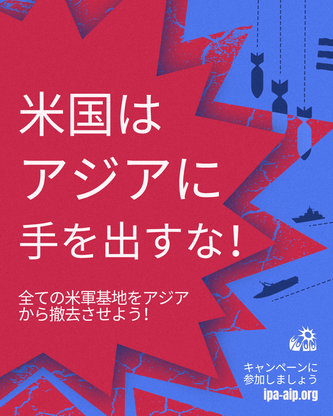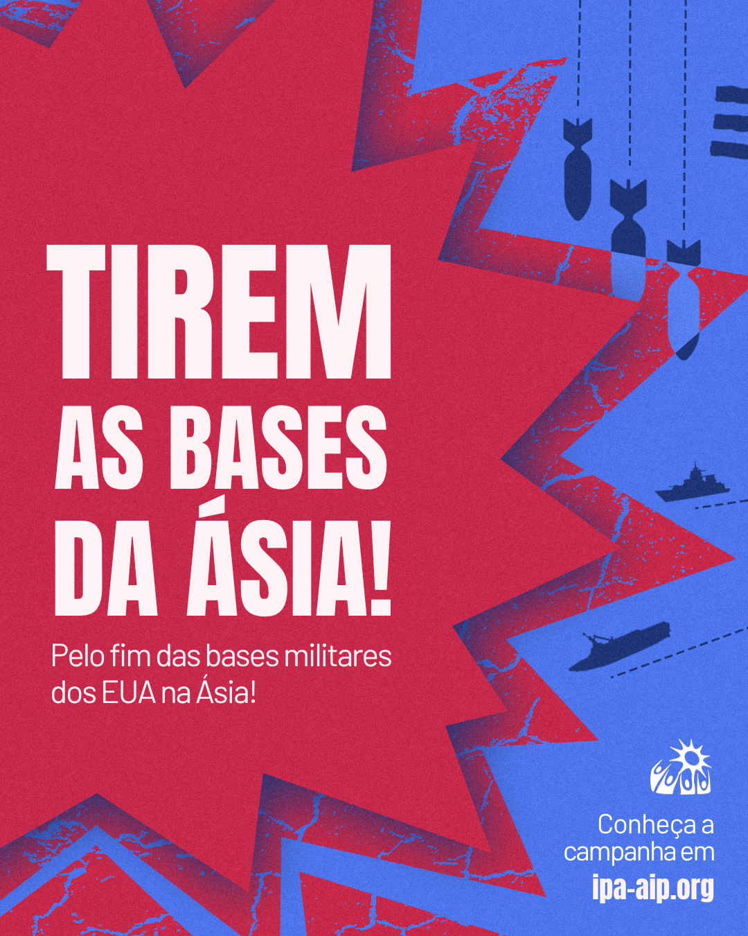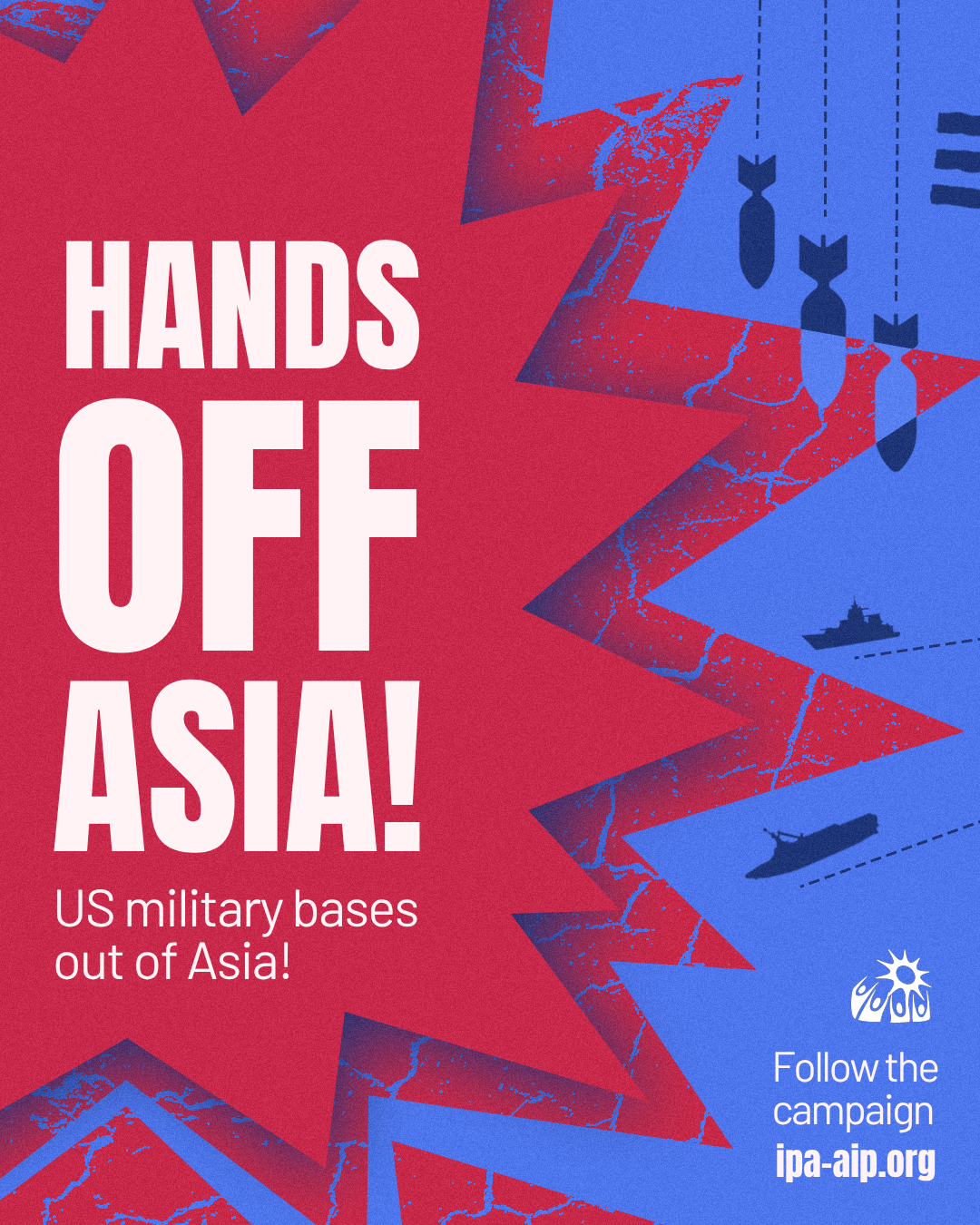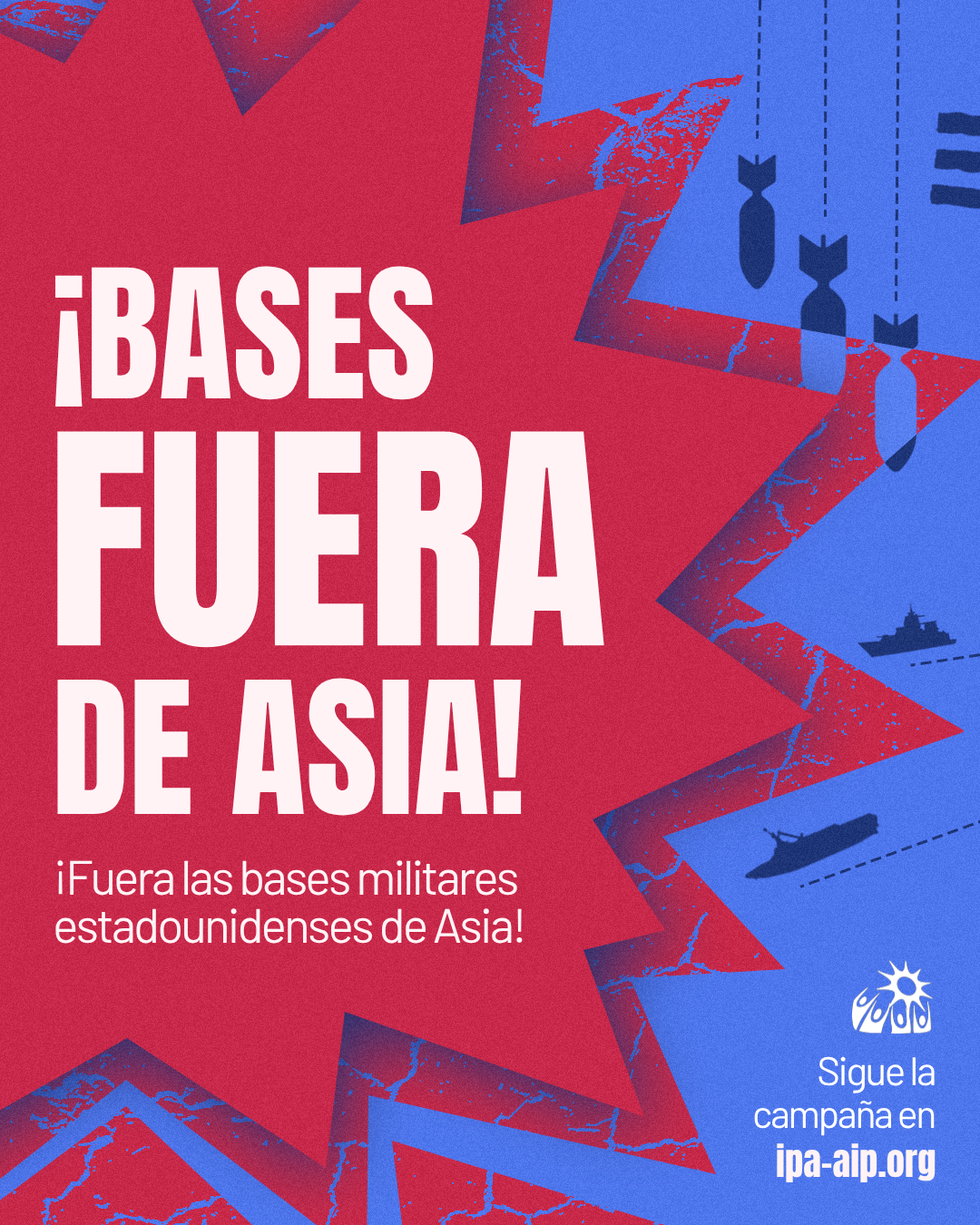Te invitamos a unirte a Bases Fuera de Asia, una campaña internacional contra el militarismo estadounidense y la Nueva Guerra Fría en Asia-Pacífico. Liderada por la Asamblea Internacional de los Pueblos y organizaciones aliadas de toda la región, esta campaña hace un llamado a los movimientos, sindicatos, partidos políticos y todas las personas de conciencia a oponerse a la creciente arquitectura de guerra en todo el continente, y a exigir paz, soberanía y dignidad para todos los pueblos asiáticos.