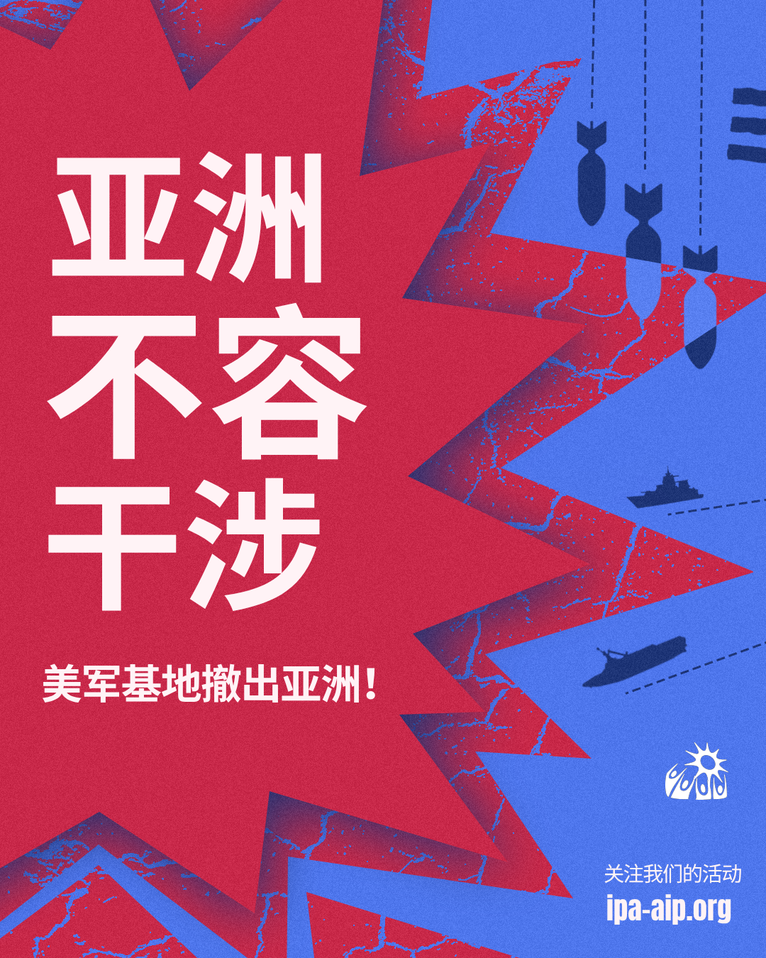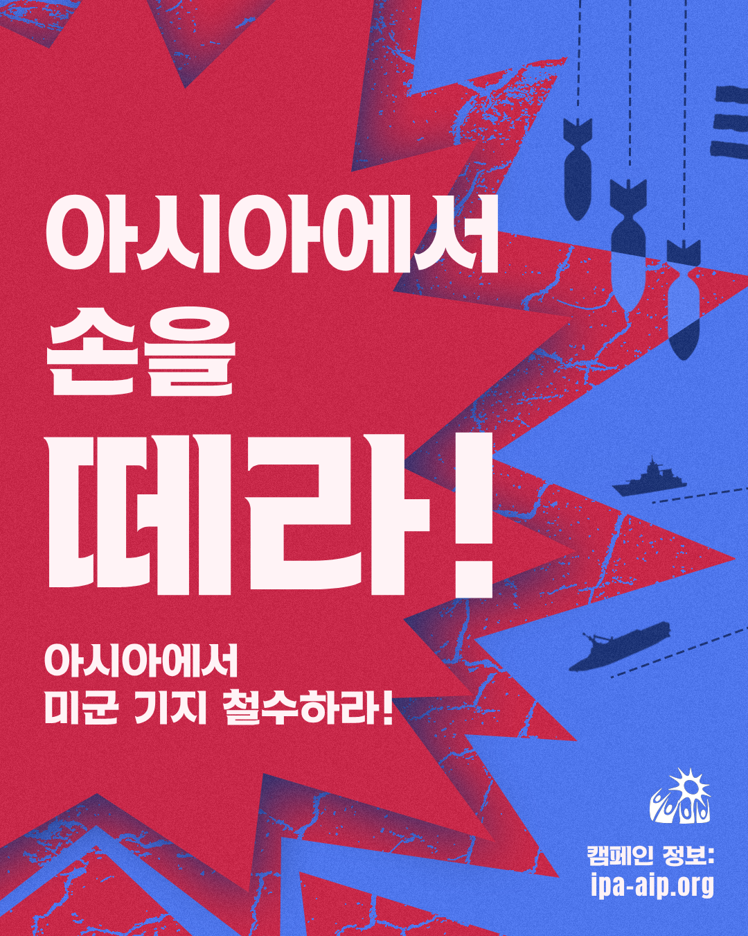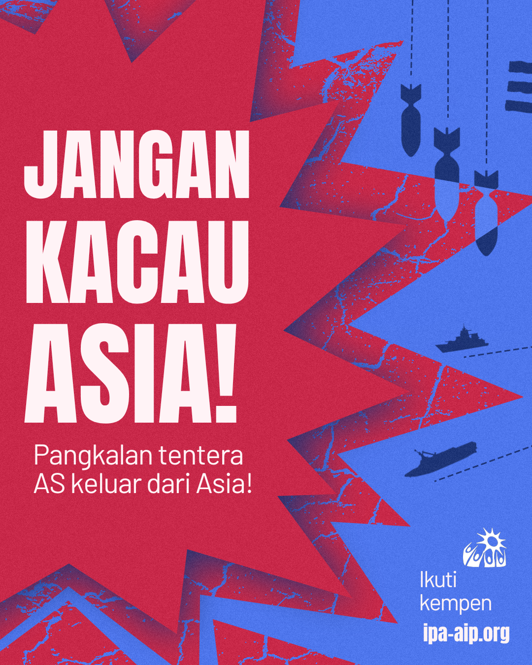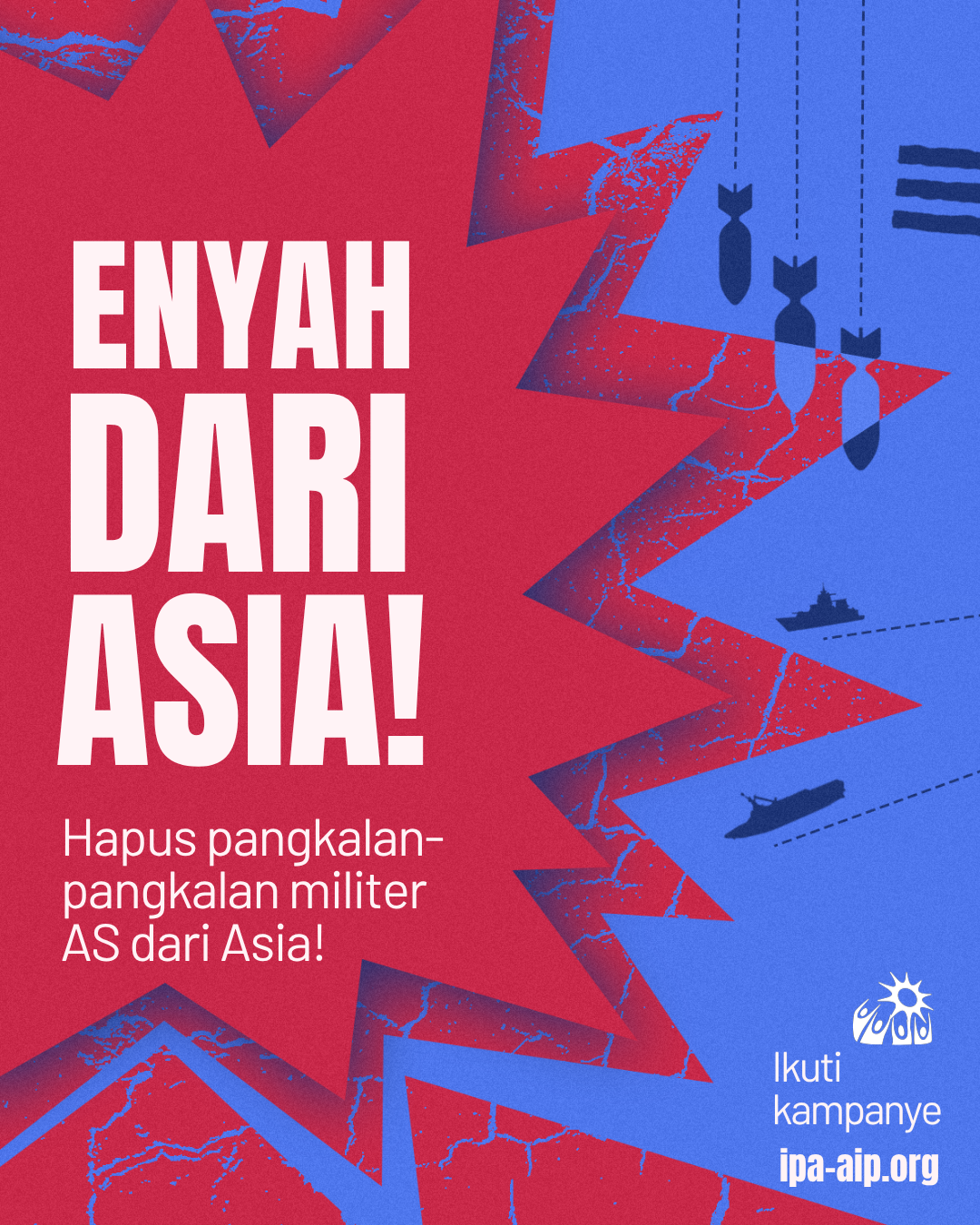 Te invitamos a unirte a Bases Fuera de Asia, una campaña internacional contra el militarismo estadounidense y la Nueva Guerra Fría en Asia-Pacífico. Liderada por la Asamblea Internacional de los Pueblos y organizaciones aliadas de toda la región, esta campaña hace un llamado a los movimientos, sindicatos, partidos políticos y todas las personas de conciencia a oponerse a la creciente arquitectura de guerra en todo el continente, y a exigir paz, soberanía y dignidad para todos los pueblos asiáticos.