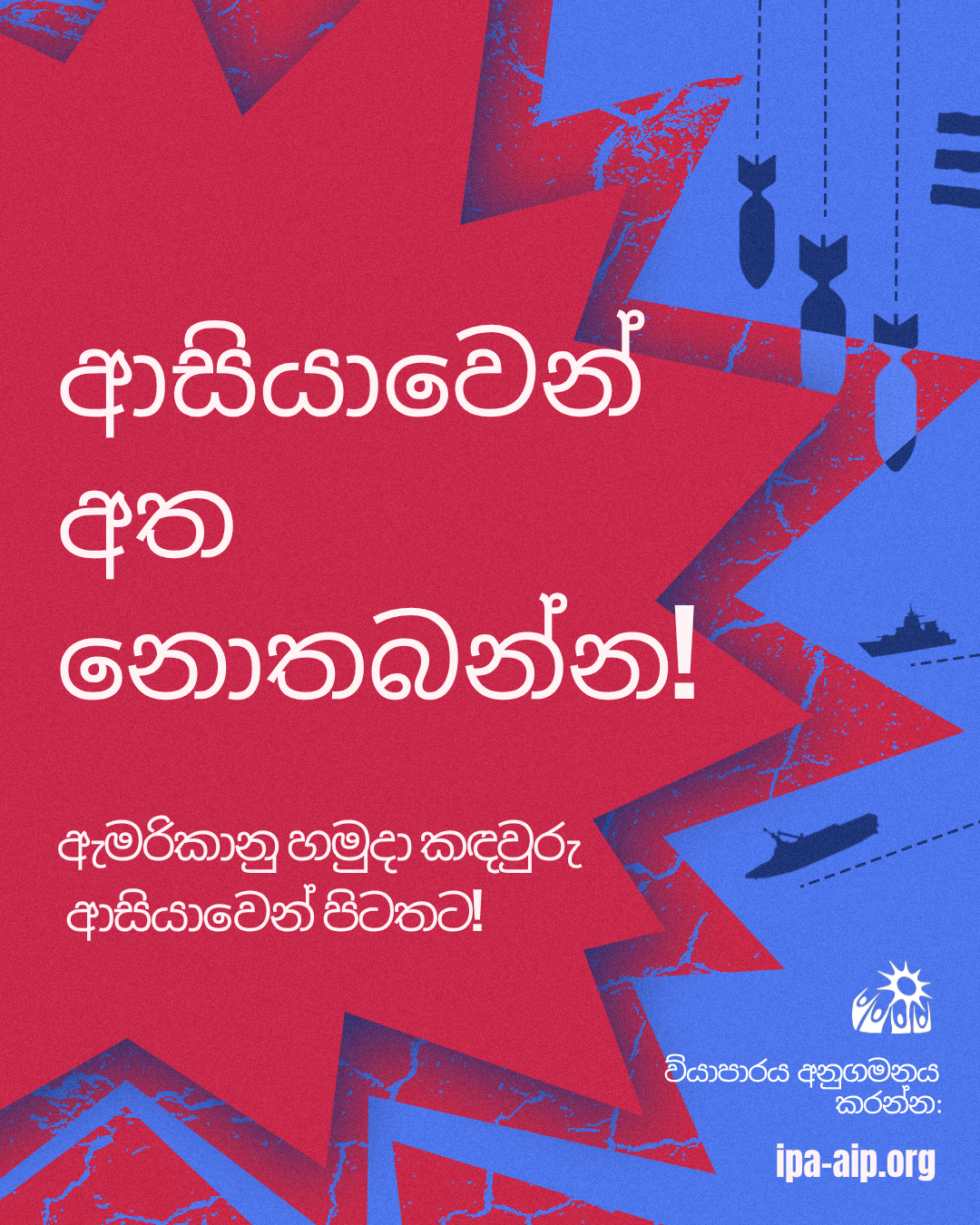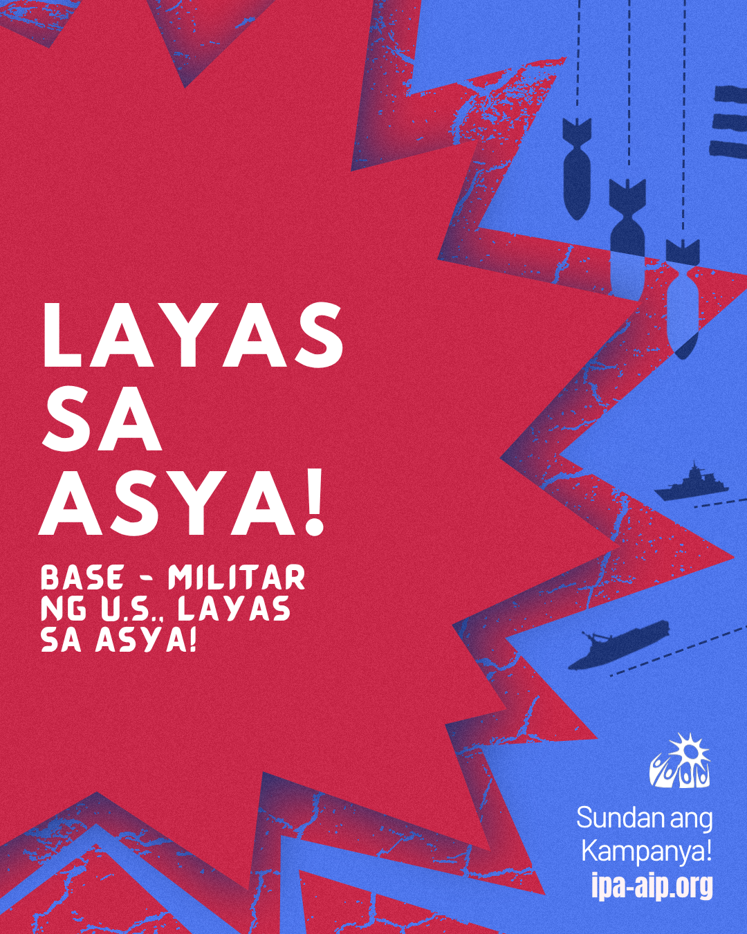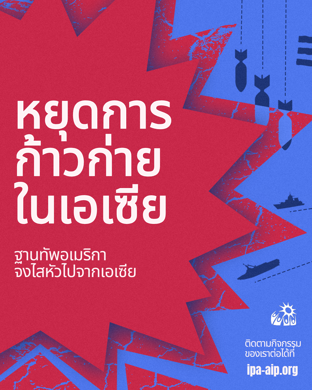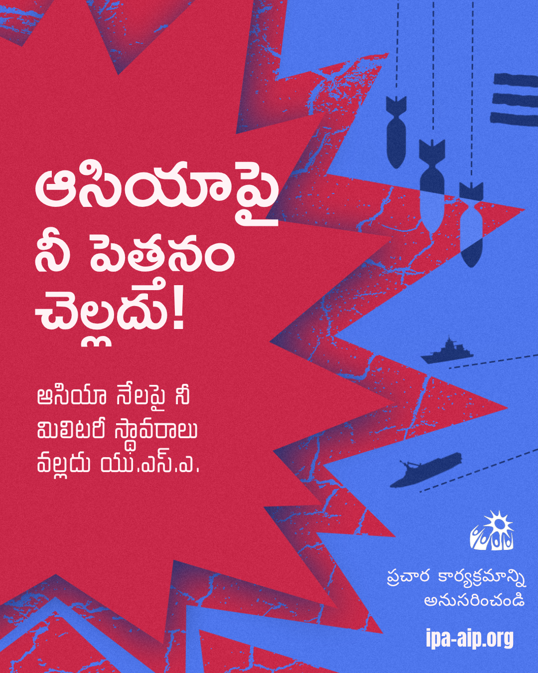 Te invitamos a unirte a Bases Fuera de Asia, una campaña internacional contra el militarismo estadounidense y la Nueva Guerra Fría en Asia-Pacífico. Liderada por la Asamblea Internacional de los Pueblos y organizaciones aliadas de toda la región, esta campaña hace un llamado a los movimientos, sindicatos, partidos políticos y todas las personas de conciencia a oponerse a la creciente arquitectura de guerra en todo el continente, y a exigir paz, soberanía y dignidad para todos los pueblos asiáticos.